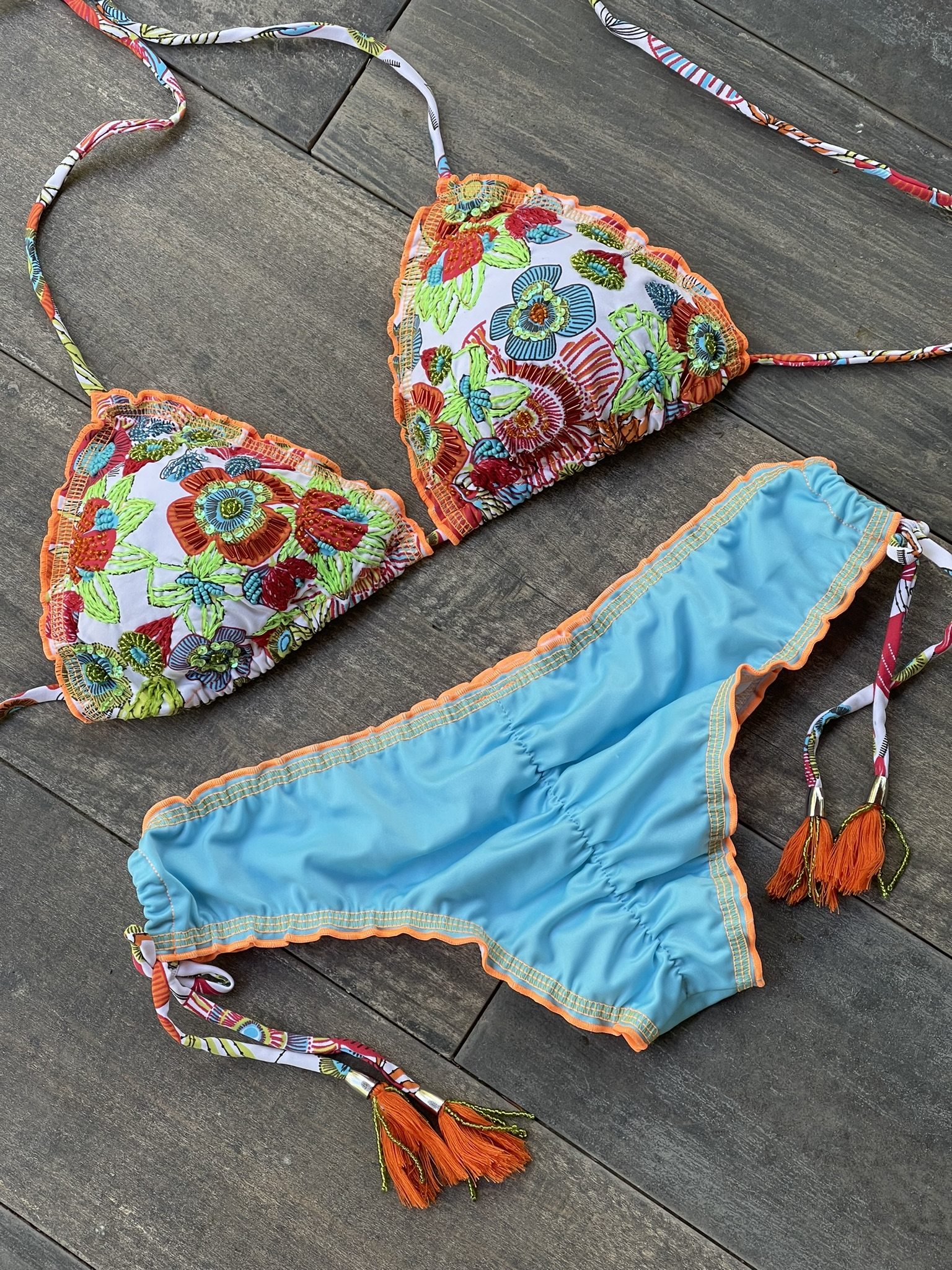 Cada prenda está diseñada y confeccionada a mano por nuestro talentoso equipo en Colombia, garantizando que cada bikini no solo sea único, sino que también esté elaborado con el máximo cuidado y detalle.