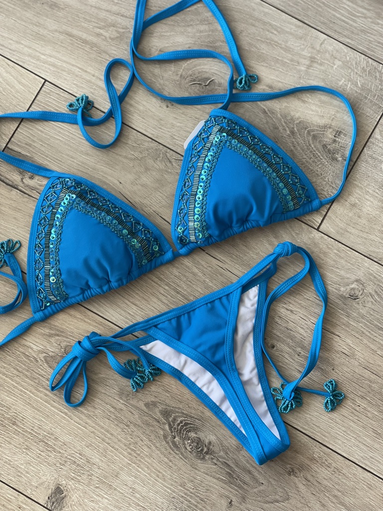 Cada prenda está diseñada y confeccionada a mano por nuestro talentoso equipo en Colombia, garantizando que cada bikini no solo sea único, sino que también esté elaborado con el máximo cuidado y detalle.