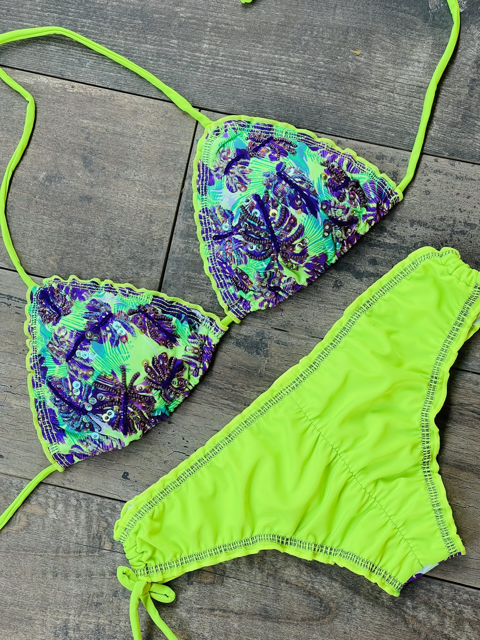 Cada prenda está diseñada y confeccionada a mano por nuestro talentoso equipo en Colombia, garantizando que cada bikini no solo sea único, sino que también esté elaborado con el máximo cuidado y detalle.