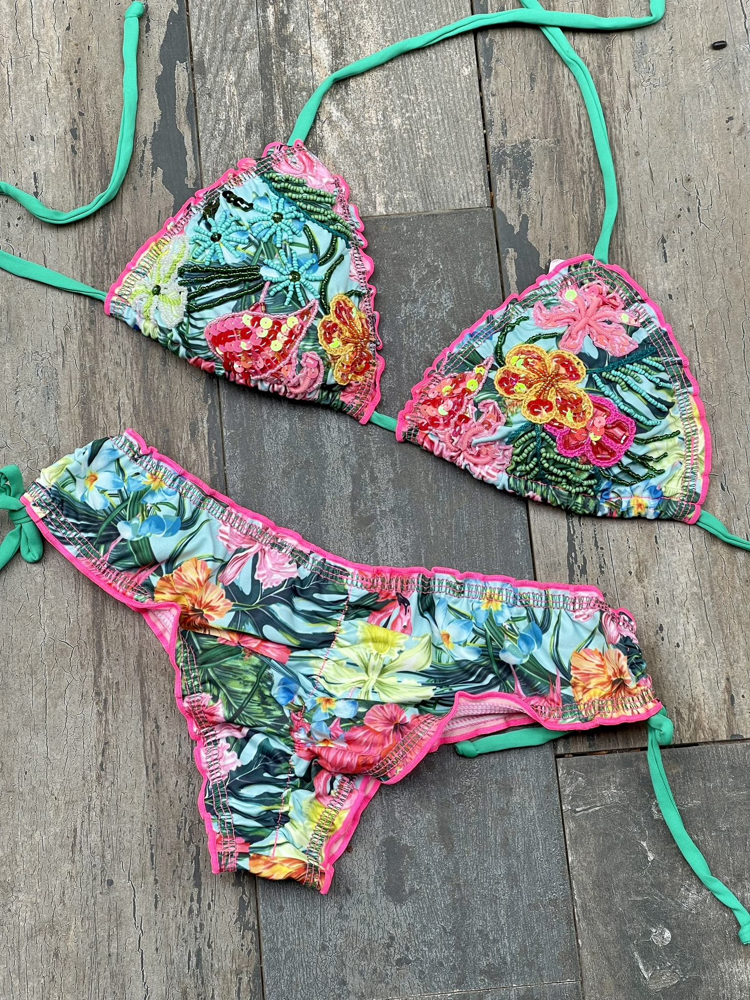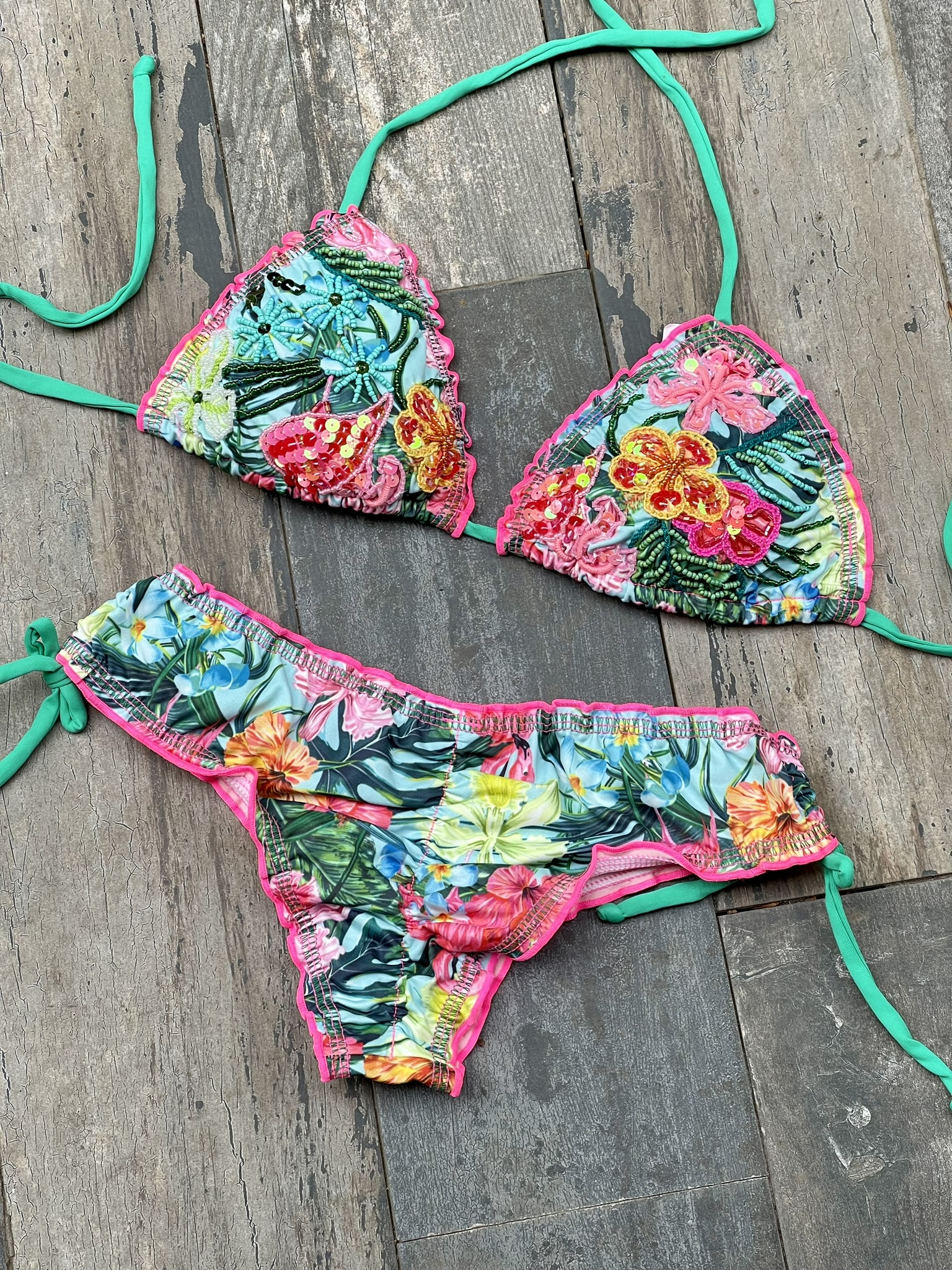 Cada prenda está diseñada y confeccionada a mano por nuestro talentoso equipo en Colombia, garantizando que cada bikini no solo sea único, sino que también esté elaborado con el máximo cuidado y detalle.