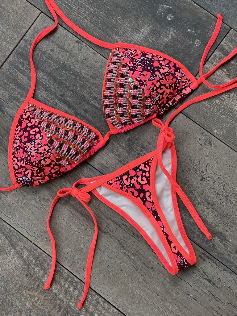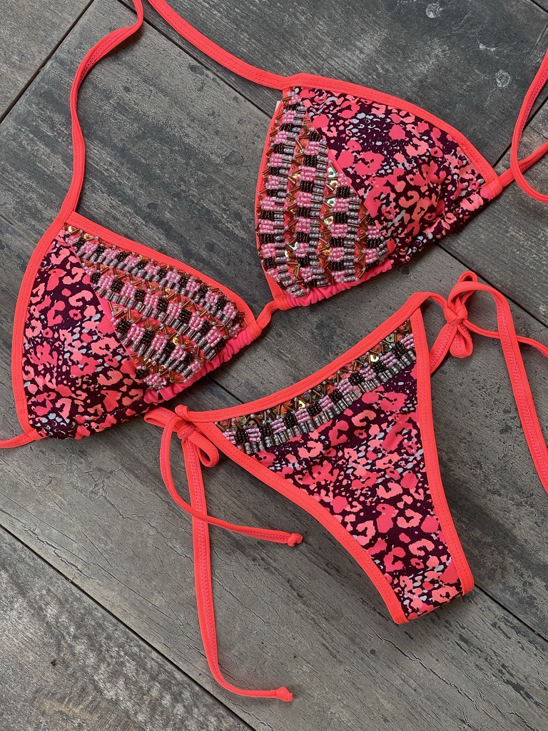 Cada prenda está diseñada y confeccionada a mano por nuestro talentoso equipo en Colombia, garantizando que cada bikini no solo sea único, sino que también esté elaborado con el máximo cuidado y detalle.