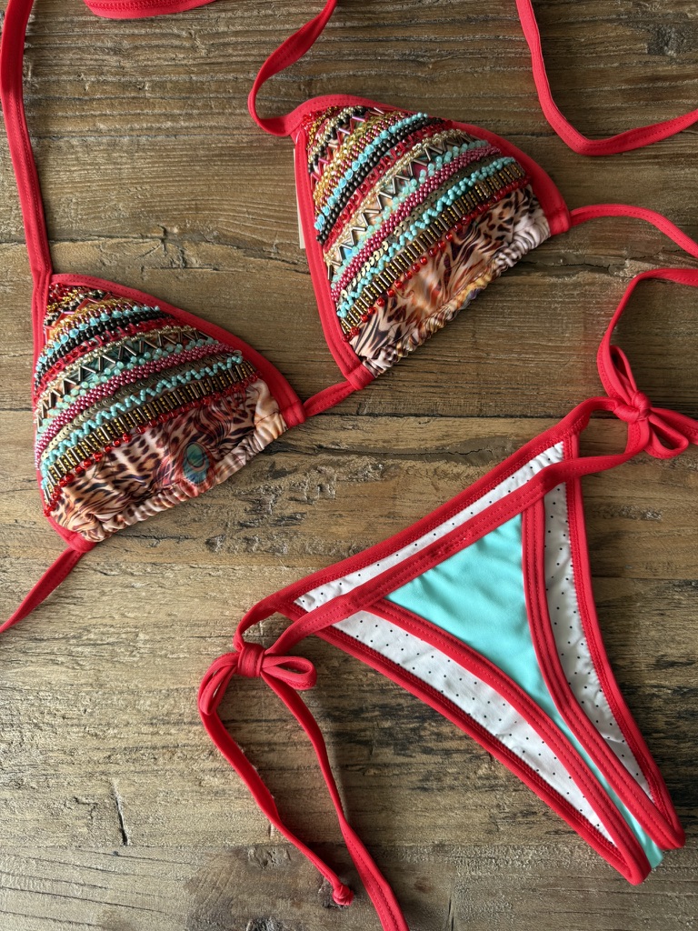 Cada prenda está diseñada y confeccionada a mano por nuestro talentoso equipo en Colombia, garantizando que cada bikini no solo sea único, sino que también esté elaborado con el máximo cuidado y detalle.