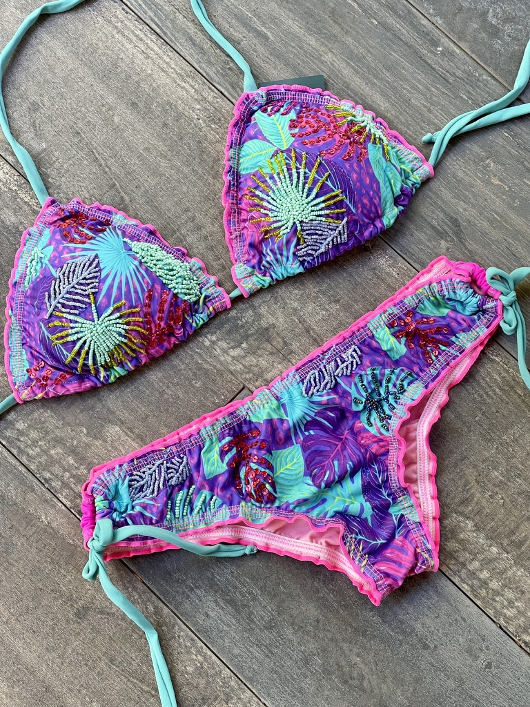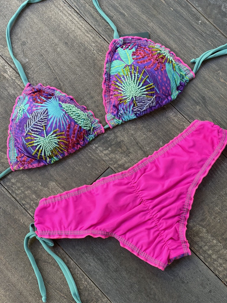 Cada prenda está diseñada y confeccionada a mano por nuestro talentoso equipo en Colombia, garantizando que cada bikini no solo sea único, sino que también esté elaborado con el máximo cuidado y detalle.