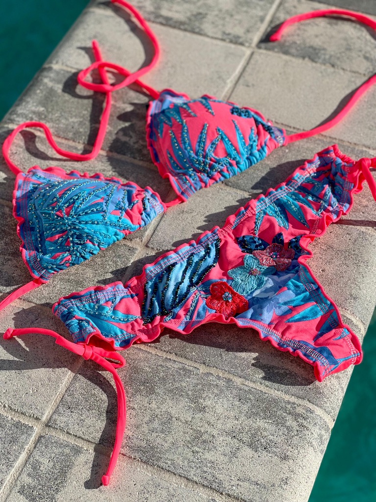 Cada prenda está diseñada y confeccionada a mano por nuestro talentoso equipo en Colombia, garantizando que cada bikini no solo sea único, sino que también esté elaborado con el máximo cuidado y detalle.