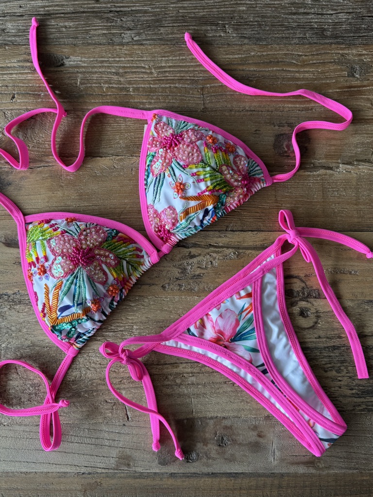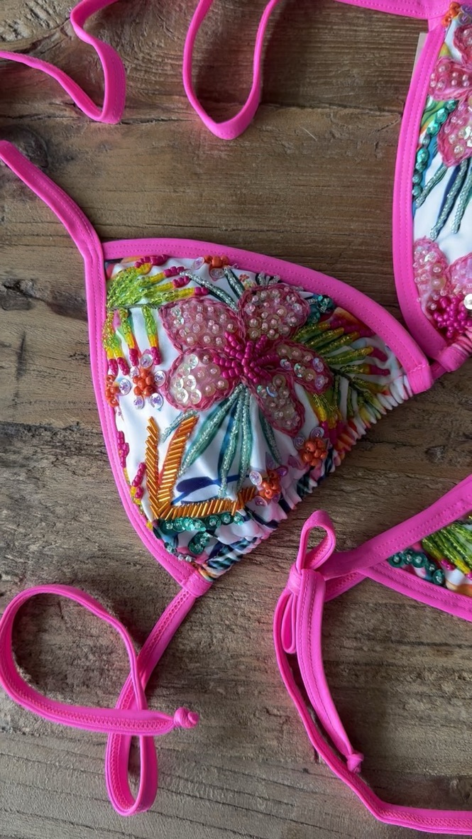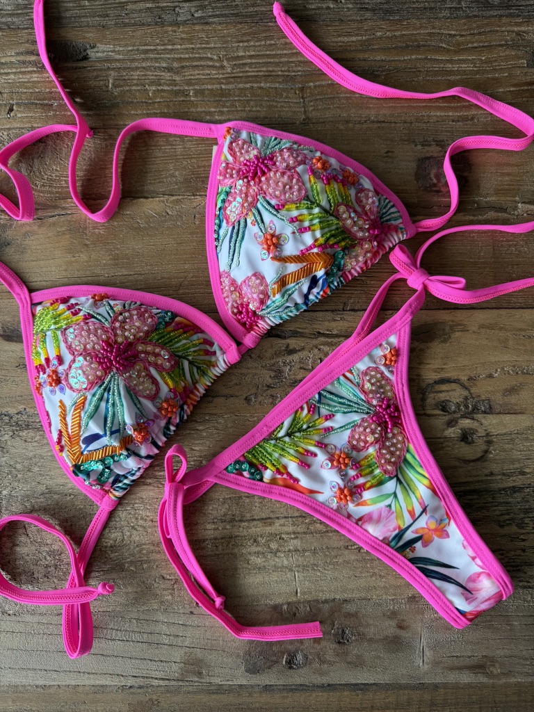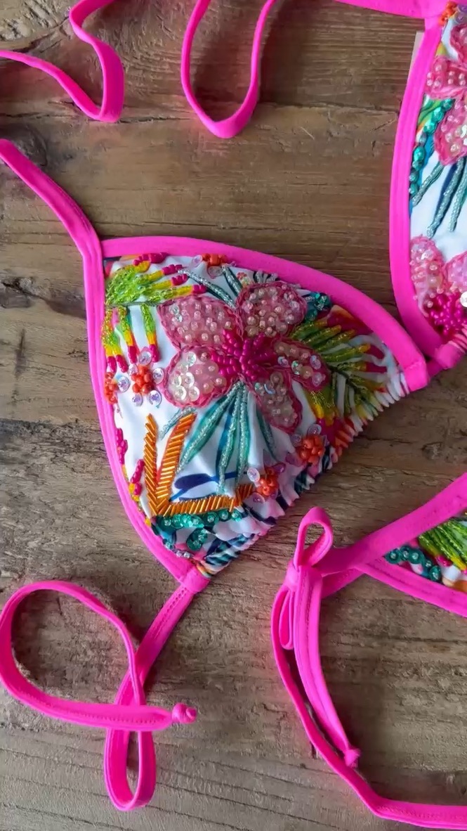 Cada prenda está diseñada y confeccionada a mano por nuestro talentoso equipo en Colombia, garantizando que cada bikini no solo sea único, sino que también esté elaborado con el máximo cuidado y detalle.