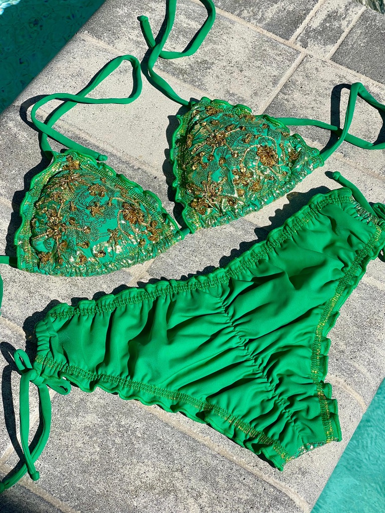 Cada prenda está diseñada y confeccionada a mano por nuestro talentoso equipo en Colombia, garantizando que cada bikini no solo sea único, sino que también esté elaborado con el máximo cuidado y detalle.