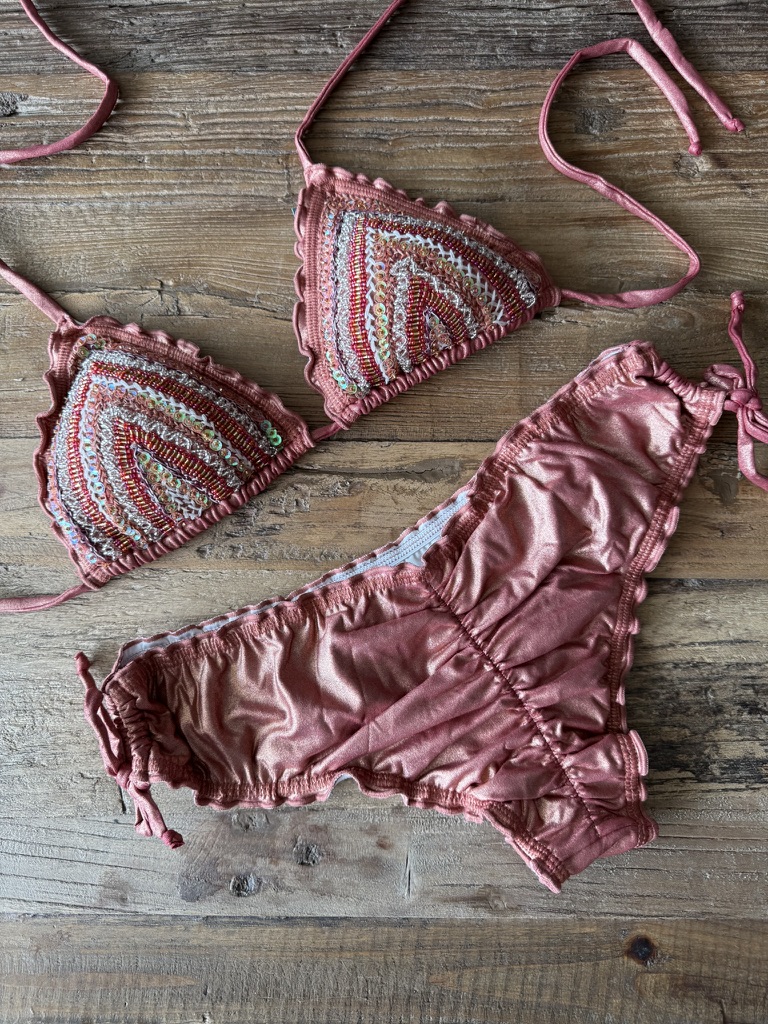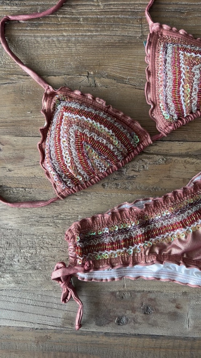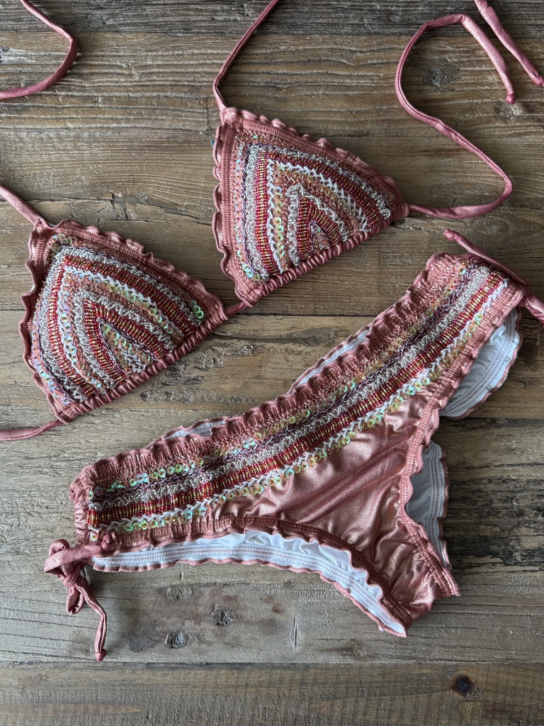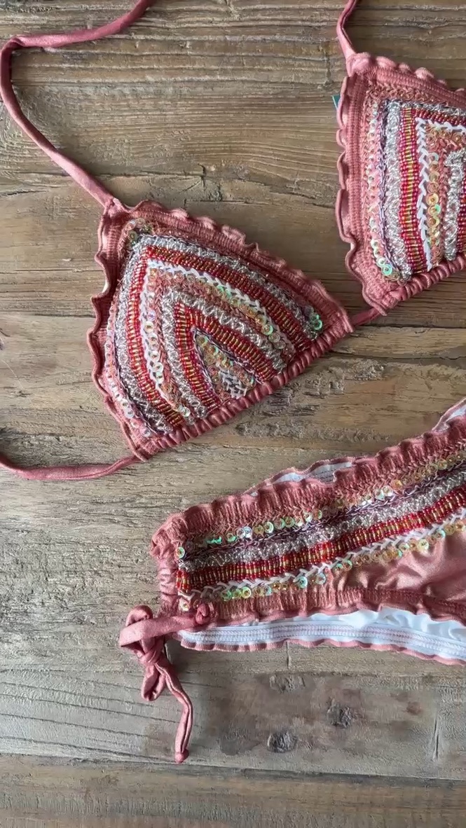 Cada prenda está diseñada y confeccionada a mano por nuestro talentoso equipo en Colombia, garantizando que cada bikini no solo sea único, sino que también esté elaborado con el máximo cuidado y detalle.
