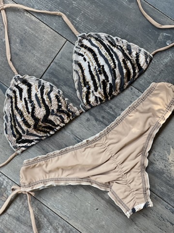 Cada prenda está diseñada y confeccionada a mano por nuestro talentoso equipo en Colombia, garantizando que cada bikini no solo sea único, sino que también esté elaborado con el máximo cuidado y detalle.