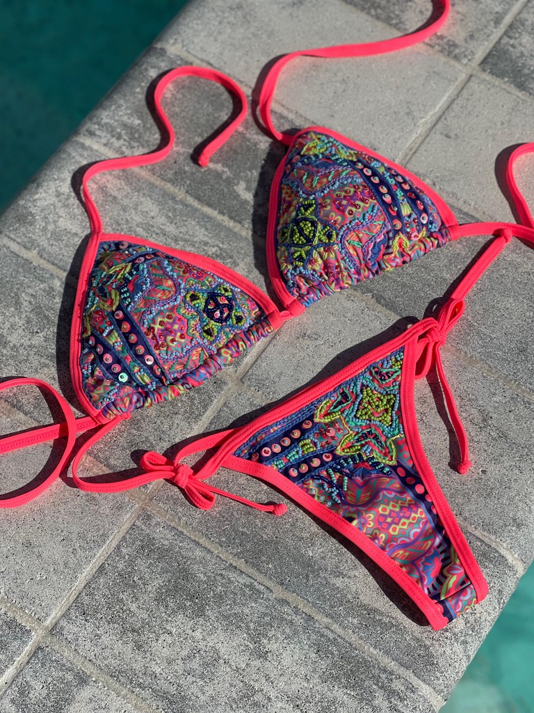 Cada prenda está diseñada y confeccionada a mano por nuestro talentoso equipo en Colombia, garantizando que cada bikini no solo sea único, sino que también esté elaborado con el máximo cuidado y detalle.