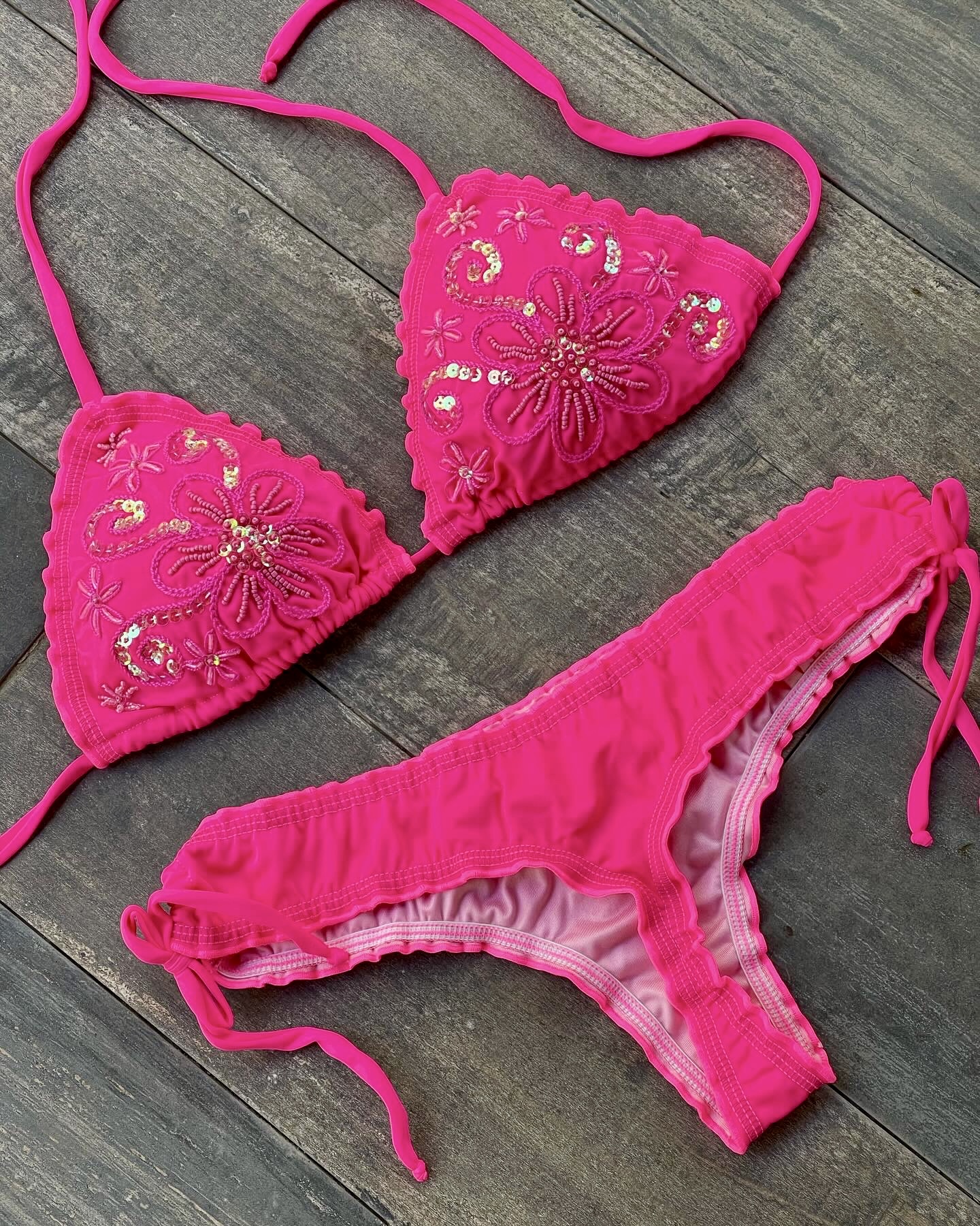 Cada prenda está diseñada y confeccionada a mano por nuestro talentoso equipo en Colombia, garantizando que cada bikini no solo sea único, sino que también esté elaborado con el máximo cuidado y detalle.