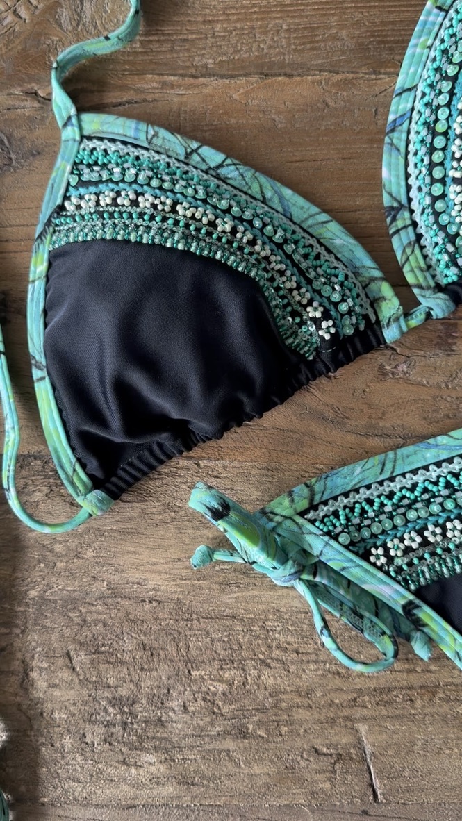 Cada prenda está diseñada y confeccionada a mano por nuestro talentoso equipo en Colombia, garantizando que cada bikini no solo sea único, sino que también esté elaborado con el máximo cuidado y detalle.