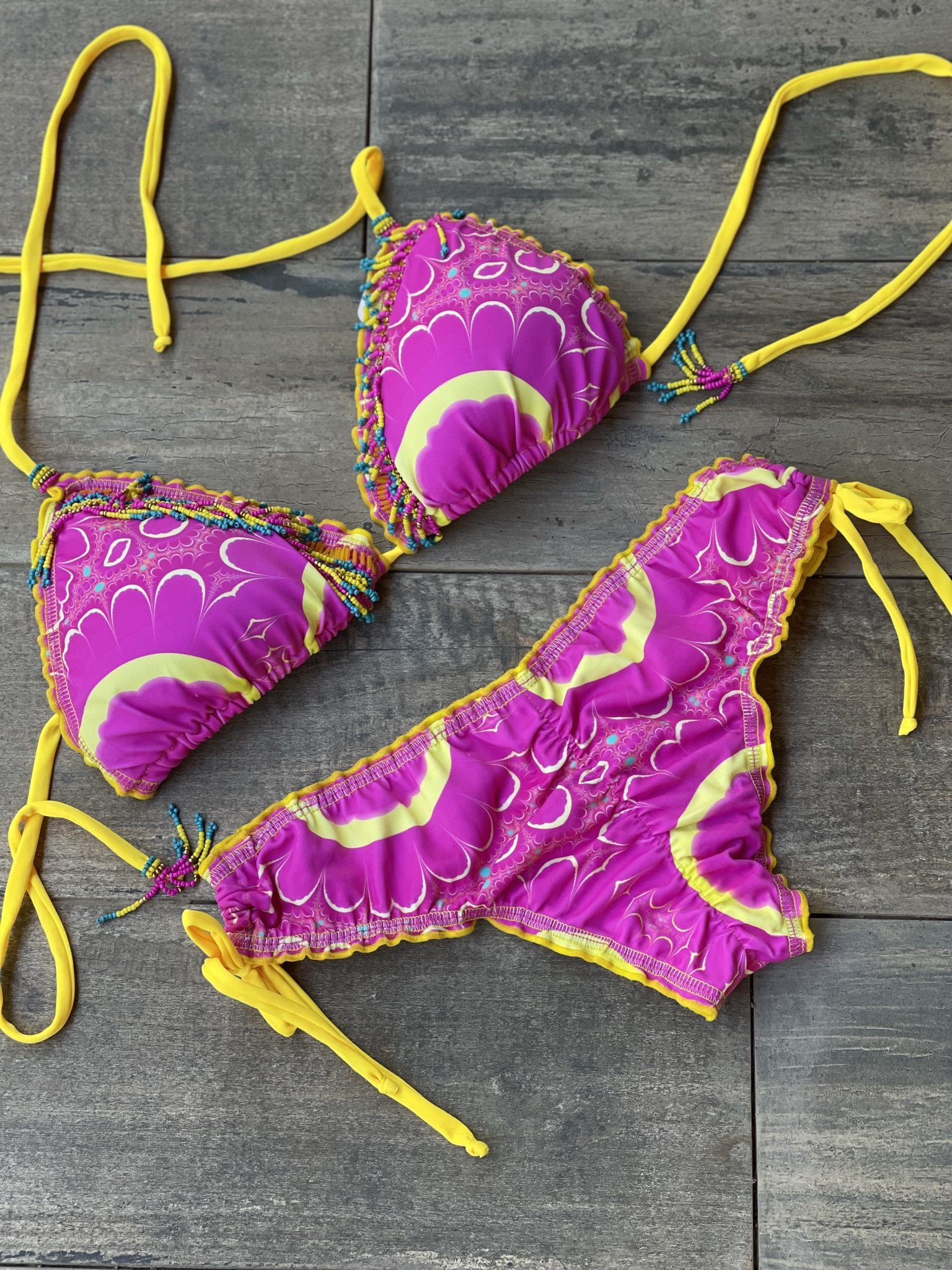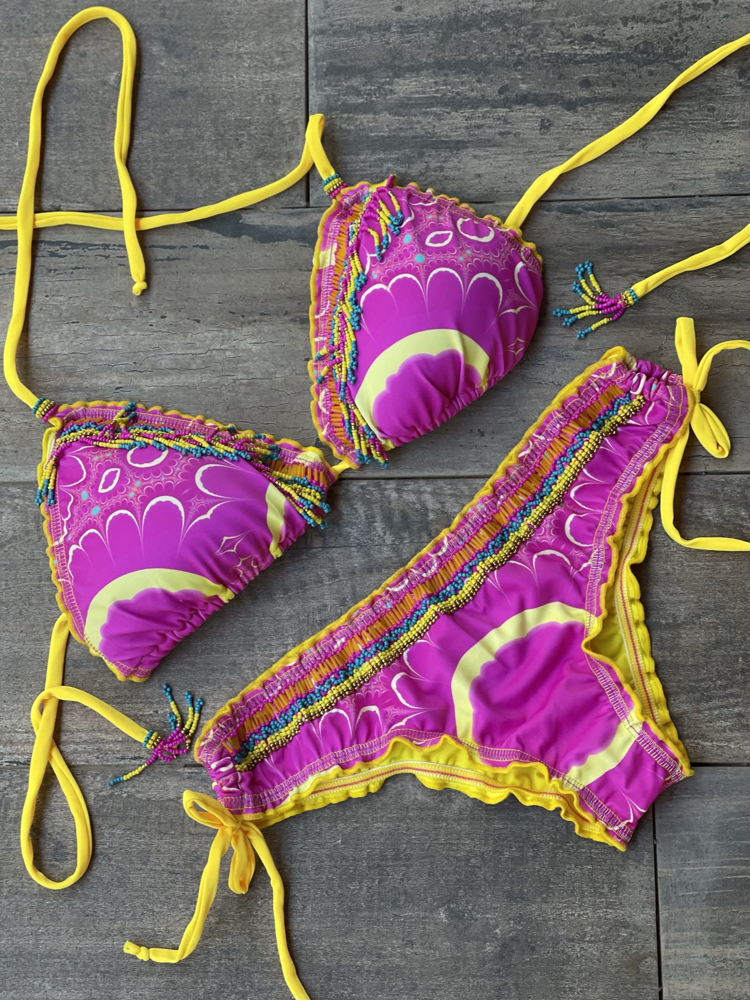 Cada prenda está diseñada y confeccionada a mano por nuestro talentoso equipo en Colombia, garantizando que cada bikini no solo sea único, sino que también esté elaborado con el máximo cuidado y detalle.