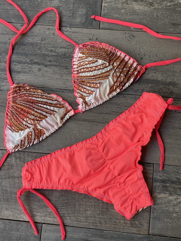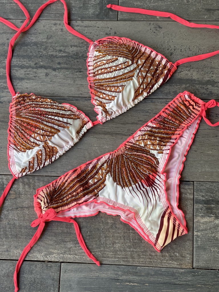 Cada prenda está diseñada y confeccionada a mano por nuestro talentoso equipo en Colombia, garantizando que cada bikini no solo sea único, sino que también esté elaborado con el máximo cuidado y detalle.